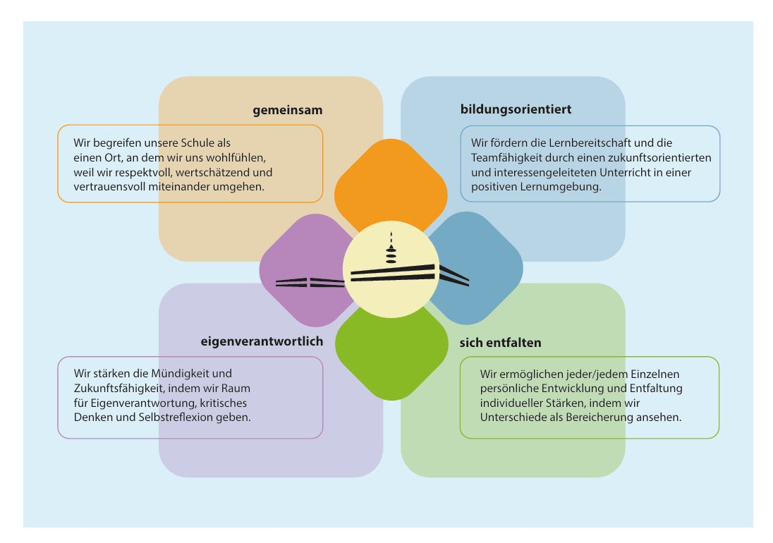 Gemeinsam haben Schüler:innen, Eltern und Lehrkräfte ein inspirierendes Leitbild entwickelt, das unser schulisches Handeln und Miteinander ausweist: